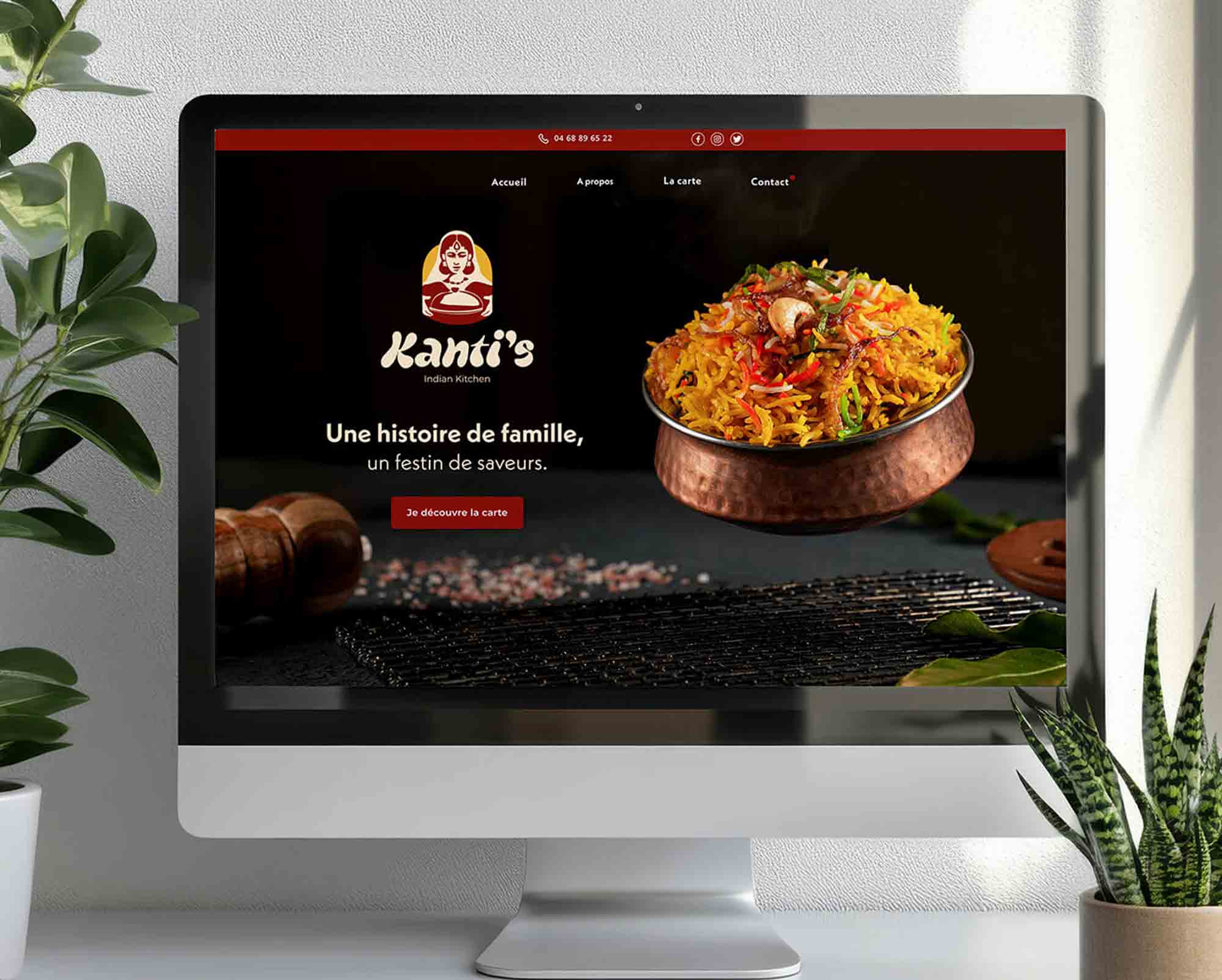 Identité visuelle et communication complète d’un restaurant indien fictif mettant en avant des recettes familiales dans un cadre chaleureux et convivial.